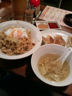 屋台風な感じでうまかったぁ本日の炒飯と餃子セット。