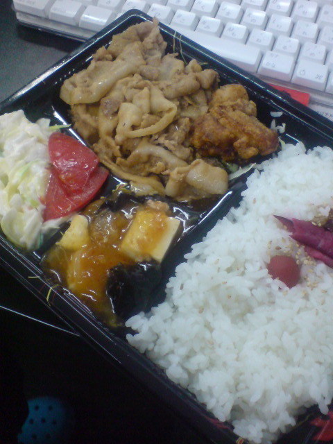 焼き肉弁当+鶏唐1コでお腹いっぱい!いつもは550円だった気がすんだけど、おばちゃん50円まけてくれた。